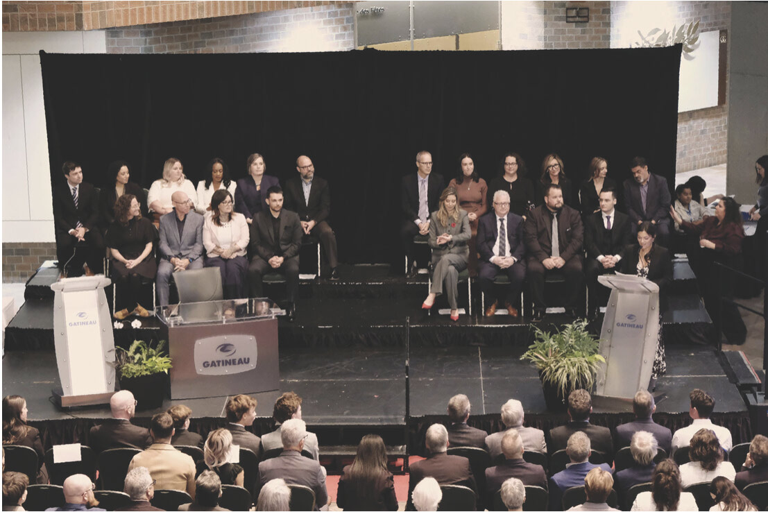 C’était une soirée remplie d'émotions et de solennité lors de la cérémonie d’assermentation du conseil municipal de Gatineau, qui s’est tenue dans l’agora de la Maison du Citoyen le 10 novembre dernier. Les invités ont été accueillis par des mélodies de violons et de pianos, créant une ambiance chaleureuse et bienveillante.
